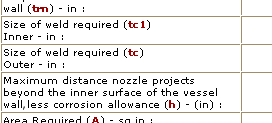 · Thicknesses (Vessel and Nozzle).