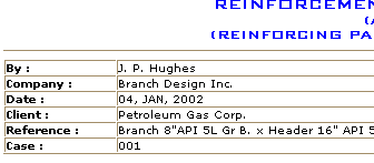 This method covers the design of reinforcement for branch connections of gas pipelines for gas transmissions and   distributions systems.