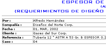 Espesor Nominal de Pared Requerido de acuerdo con una presión de